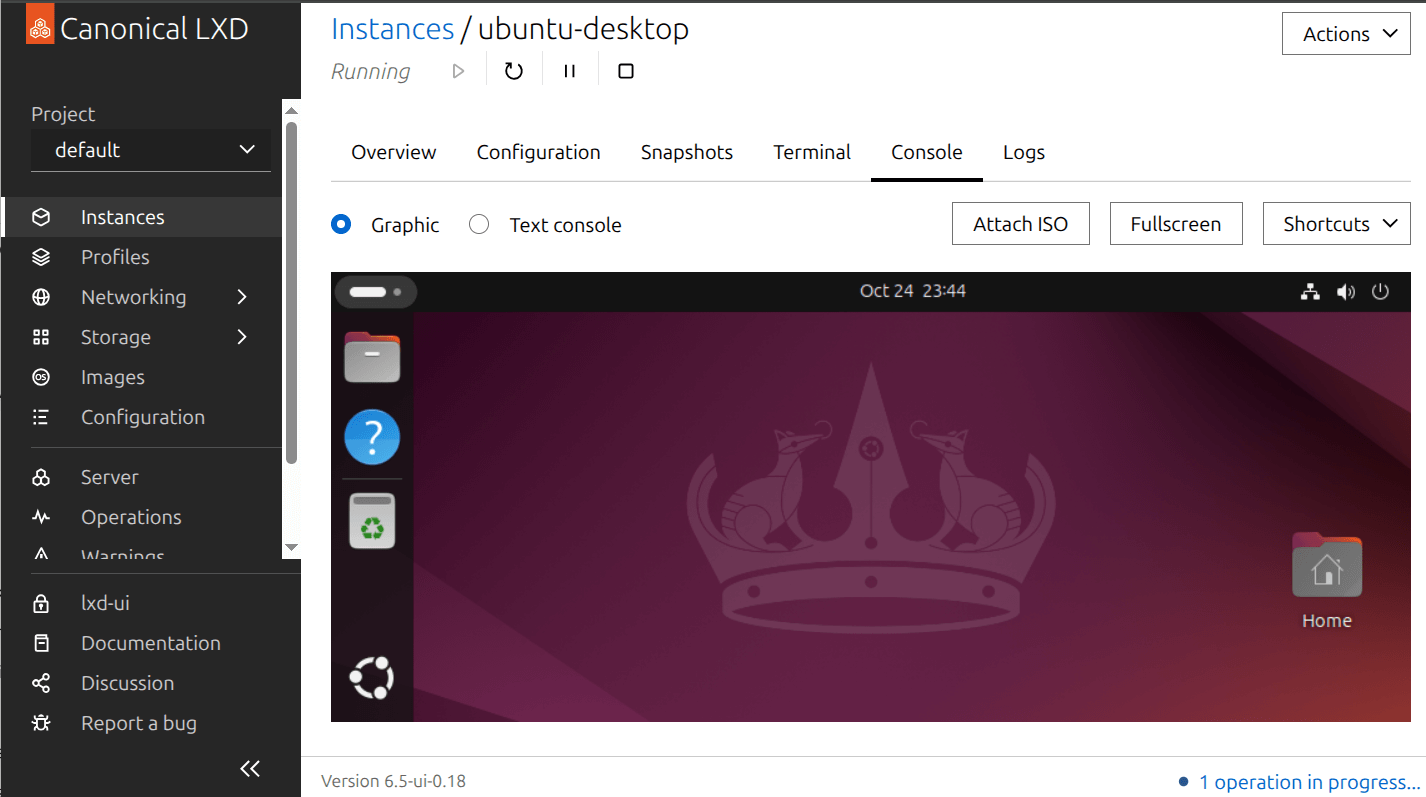The LXD web UI provides you with a graphical interface to manage your LXD server and instances. It does not provide full functionality yet, but it is constantly evolving, already covering many of the features of the LXD command-line client.